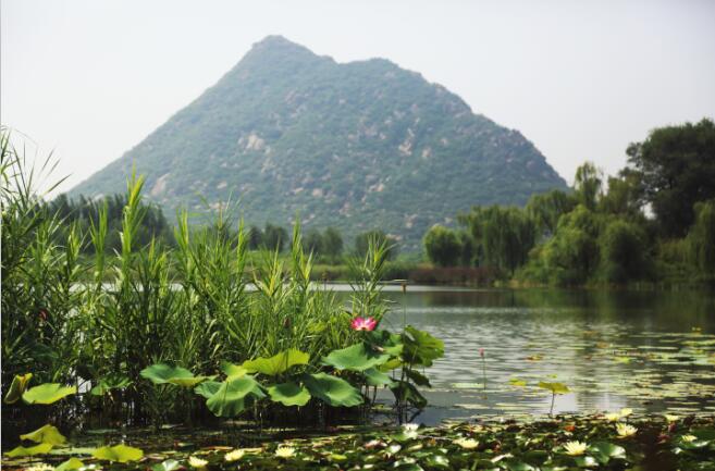 濟(jì)南華山又名華不(fū)注山,其名取自于《詩(shī)經(jīng)·小雅·常棣》,其詩(shī)曰:“常(棠)棣之華,鄂不??”。“華”即“花”,“鄂不”即“萼跗”,謂之花蒂。山名“華不注”,意為此山如花跗注于水中。經(jīng)過緊張的恢復(fù)整治,目前,“華不注”的山水勝景初現(xiàn),“水中起芙蓉”的旖旎景觀又一次展現(xiàn)在世人面前。