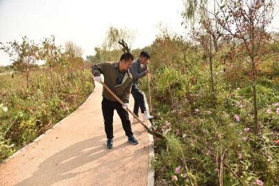 濕地辦公人員對(duì)路邊雜草進(jìn)行鏟除和整理