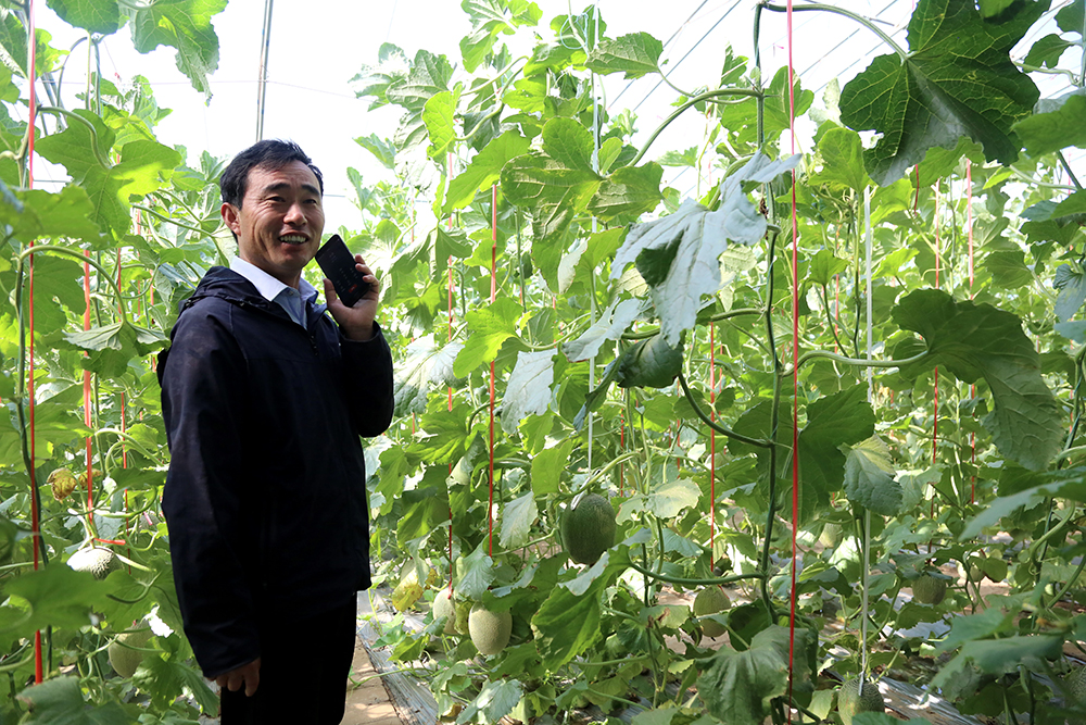在哈密瓜種植棚里,陳德國已經(jīng)電話安排好了本周六的采摘活動?,F(xiàn)在正值采摘黃金季,前來植樹踏青、大棚蔬菜瓜果采摘、園區(qū)觀光的團(tuán)隊絡(luò)繹不絕。