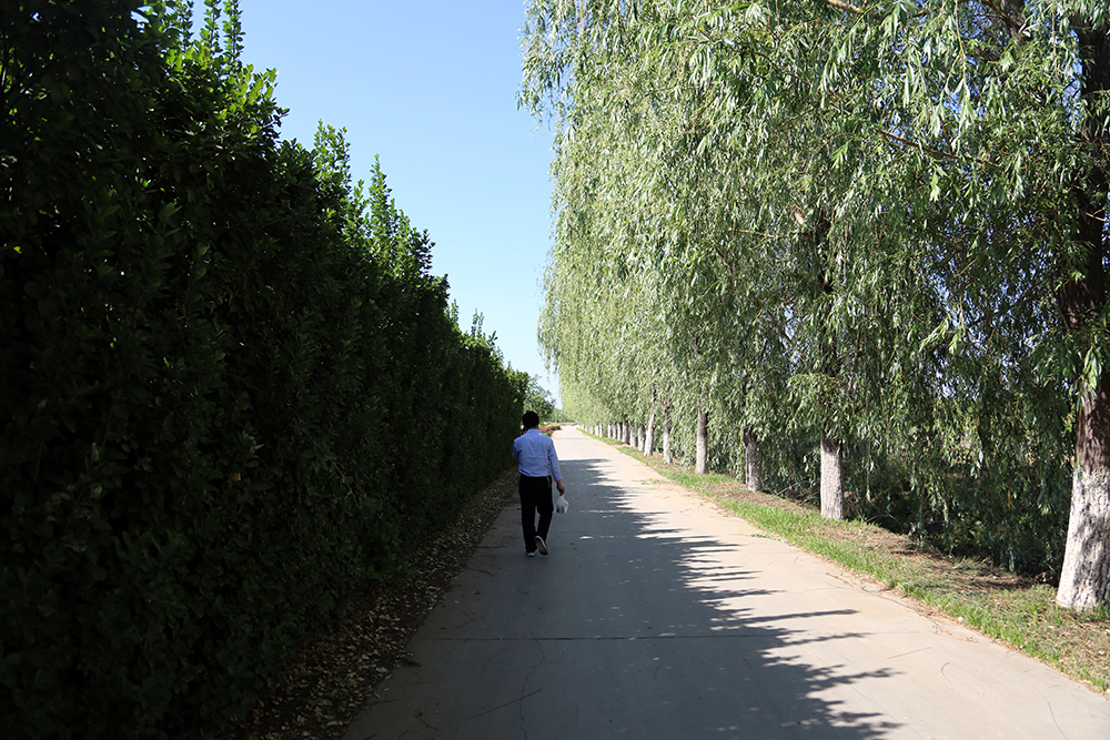 16:40趕往配菜室的路上,陳德國指著路邊一棵柳樹說:“這棵柳樹在我剛?cè)肼毜臅r候還是棵小樹苗,三年時間,平時不會去注意它,但抬頭一看,猛地就發(fā)現(xiàn)它已經(jīng)變成參天大樹了。”