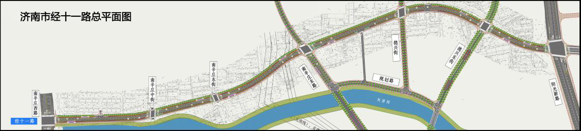 經(jīng)十一路(南辛莊西路-陽光新路)建設(shè)工程位于濟南市槐蔭區(qū),東起陽光新路,西至南辛莊西路,道路規(guī)劃紅線寬度為30米,快車道雙向四車道,全長約1967.99米,投資概算1.39億元。主要建設(shè)內(nèi)容包括新建道路、敷設(shè)雨污水管線,配套實施給水、燃?xì)狻崃?、弱電、電力等土建工程,同步進(jìn)行道路綠化、路燈、交通設(shè)施等建設(shè)。