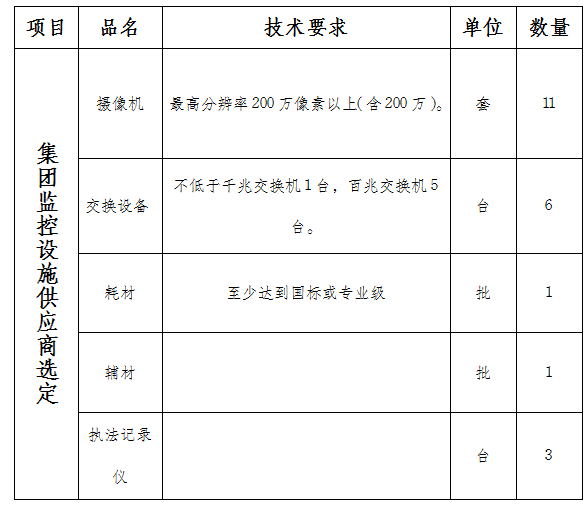 1.項(xiàng)目名稱:濱河集團(tuán)增加監(jiān)控設(shè)施供應(yīng)商選定