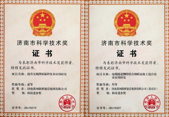 近日,濟南黃河路橋集團兩項成果榮獲濟南市科技進步獎,分別為銀河路橋主要負責的“瀝青無機降粘溫拌技術應用研究”榮獲濟南市科技進步獎二等獎,獲5萬元獎金;二分公司主要負責的“電纜隧道側壁組合鋼?;炷翝沧⒓夹g應用研究”榮獲濟南市科技進步獎三等獎,獲2萬元獎金。