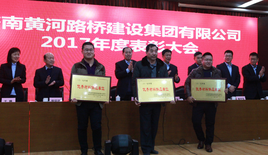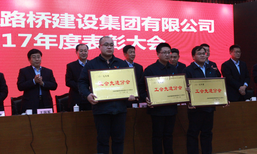會議結束后,進行了集團公司2017年度表彰大會。對2017年度集團公司先進集體、先進工作者;安全生產(chǎn)工作先進集體、先進個人;工會先進分會和工會積極分子;科技創(chuàng)新工作先進集體、先進個人;優(yōu)秀項目經(jīng)理、項目總工和職工查隱患工作先進個人;集團公司派遣人員貢獻獎;優(yōu)秀配屬單位和優(yōu)秀材料供應單位進行了表彰,先進集體及個人代表分別上臺進行了領獎。