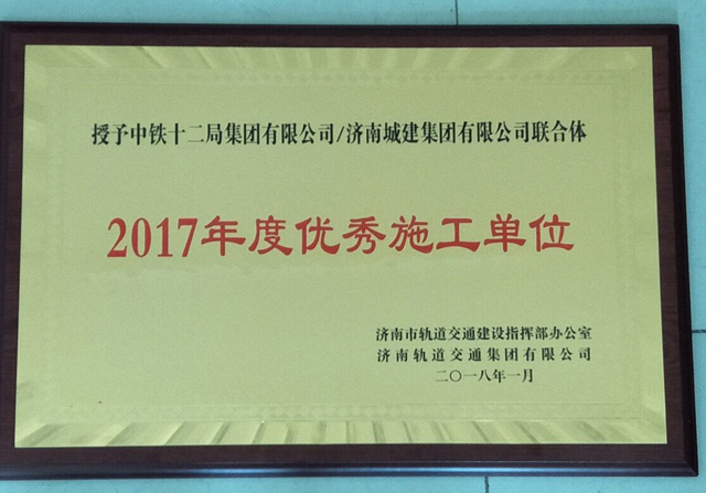 R3線土建五標(biāo)濟(jì)南城建/中鐵十二局聯(lián)合體項(xiàng)目部榮獲濟(jì)南軌道交通集團(tuán)有限公司“優(yōu)秀施工單位”榮譽(yù)稱號(hào)