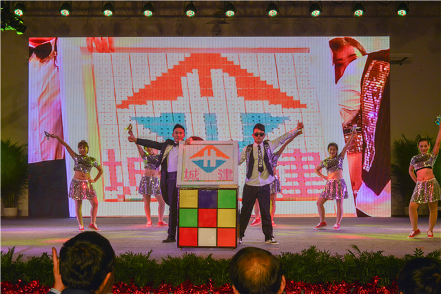 在歡快喜悅的歌舞《拜新年》中,匯演拉開序幕,紅紅火火的舞臺,映射著蒸蒸日上的發(fā)展勢頭。舞蹈《成長》《奮進》以激昂的音樂,吹響了催人奮進的號角,用動感的舞步,舞出了城建鐵軍的蓬勃朝氣?!恶R路情緣》《鐵軍男相親記》《生日》《真相》《男爭女辯》《筑夢同行》等語言類節(jié)目圍繞生產經營精心編排,真實感人,催人奮進。勵志感人的歌曲,絢麗多彩的歌伴舞,酷炫的舞蹈,神秘的魔術,魔幻的黑光劇,生龍活虎的京劇,讓觀眾著實過了一把眼癮,臺下掌聲不斷,歡欣喜悅的氣氛一浪高過一浪。小品里父母、妻子、孩子那一段段心里話,令人感同身受,潸然淚下,家屬們用實際行動表達了對企業(yè)最大的理解和支持,大家在這個溫暖的大家庭中,以誠相待,溫馨彼此。在激動人心的歌舞串燒《開創(chuàng)未來》中,匯演圓滿落下帷幕,集團領導與演職人員合影留念。