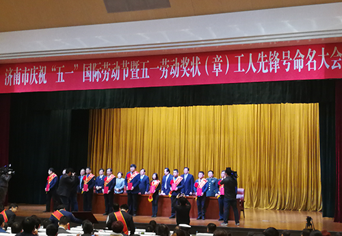 2018年4月23日,濟(jì)南市總工會在龍奧大廈召開濟(jì)南市慶祝“五一”國際勞動節(jié)暨五一勞動獎狀(章)工人先鋒號命名大會。大會表彰了一批工作突出、貢獻(xiàn)卓著的先進(jìn)集體和先進(jìn)個人。