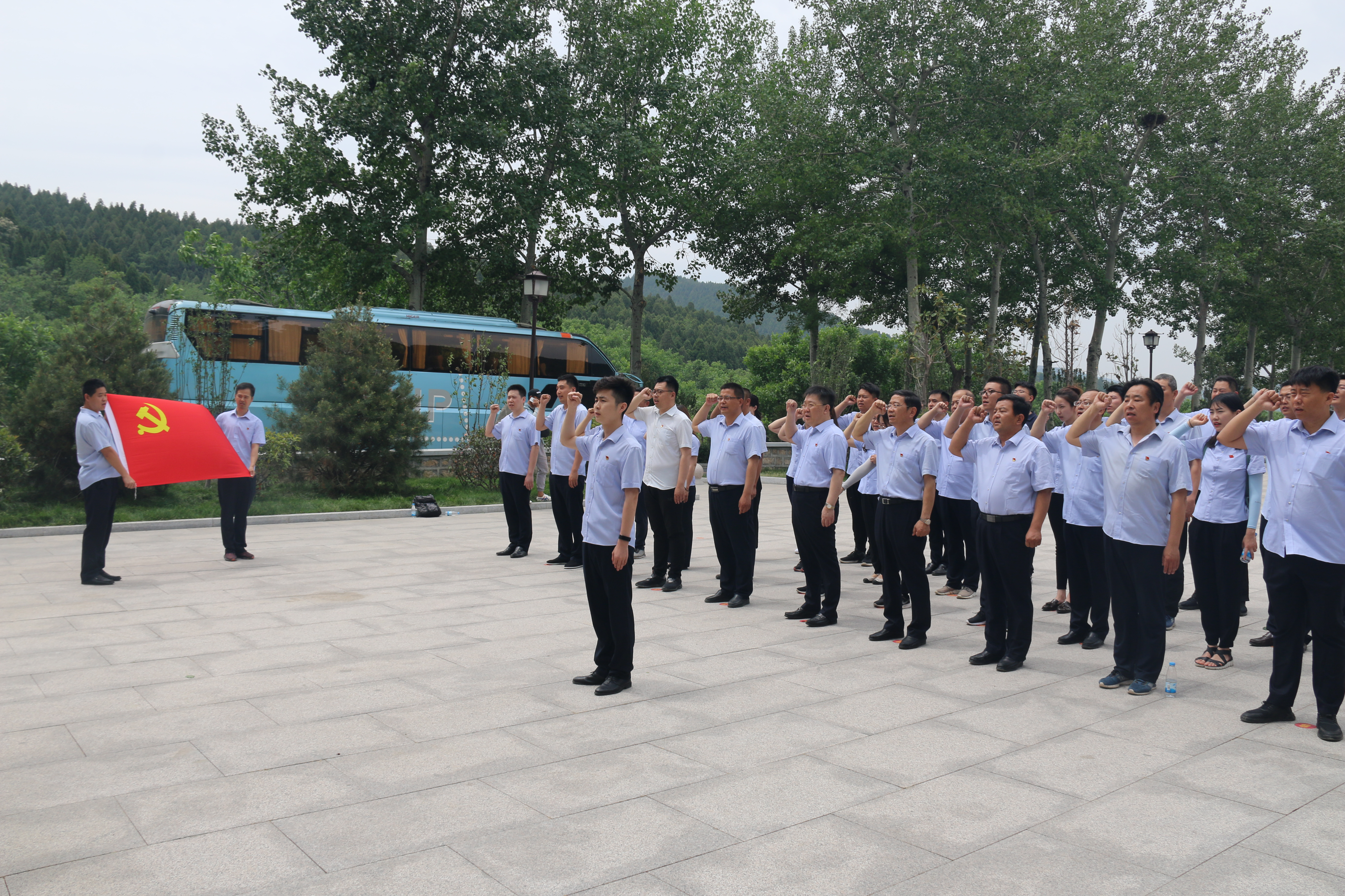 在初心廣場,全體黨員面向鮮紅的黨旗,同舉右手,重溫入黨誓詞,鏗鏘有力的誓言表明了堅守初心、忠誠于黨、砥礪前進(jìn)的決心。