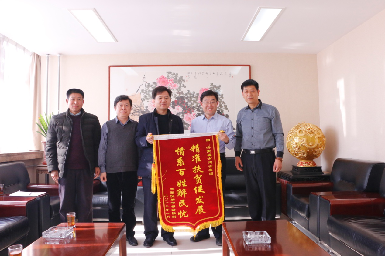 1月25日,濟(jì)陽(yáng)區(qū)新市鎮(zhèn)黨委副書記王勇、鎮(zhèn)扶貧辦主任劉俊青、路樓村支部書記路和勇、路樓村“第一書記”張慶紅一行到濟(jì)南城市建設(shè)集團(tuán)就幫扶工作進(jìn)行回訪,并為集團(tuán)送來錦旗,集團(tuán)副總經(jīng)理安玉坤、集團(tuán)辦公室副主任徐峰參加活動(dòng)。