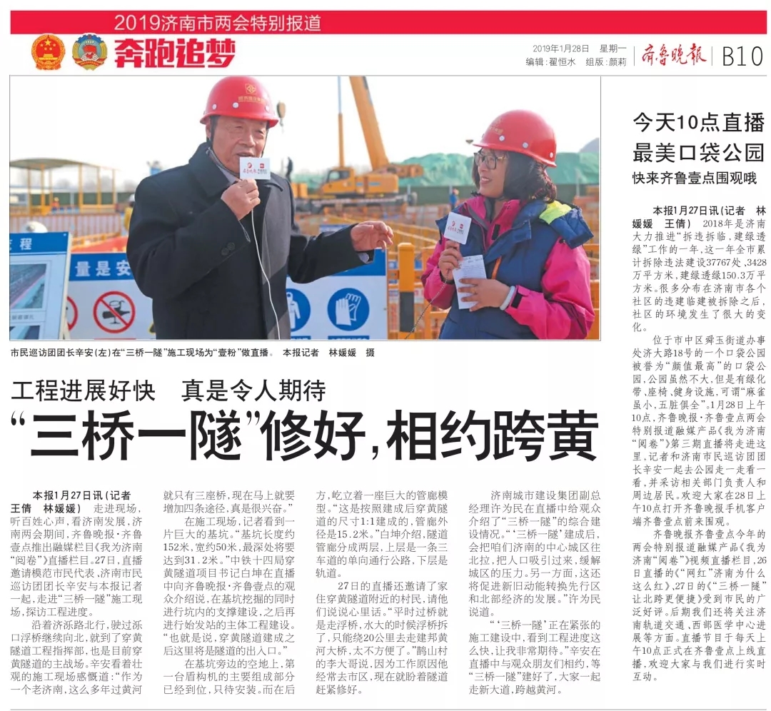 走進(jìn)現(xiàn)場(chǎng),聽百姓心聲,看濟(jì)南發(fā)展,濟(jì)南兩會(huì)期間,齊魯晚報(bào)·齊魯壹點(diǎn)推出融媒欄目《我為濟(jì)南“閱卷”》直播欄目。1月27日,模范市民代表、濟(jì)南市民巡訪團(tuán)團(tuán)長辛安與齊魯晚報(bào)記者一起,走進(jìn)濟(jì)南黃河隧道施工現(xiàn)場(chǎng),探訪“三橋一隧”工程進(jìn)度。