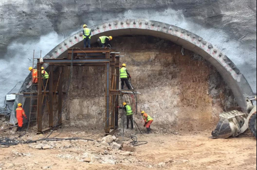 為嚴保工程質(zhì)量,打造品質(zhì)隧道,項目克服巖體較破碎等不良條件,采用新奧法原理施工,嚴格“管超前、嚴注漿、短開挖、強支護、早封閉、勤量測”十八字方針。隧道鉆孔爆破施工嚴格控制超欠挖和控制周邊眼間距以及藥量。開挖完成后及時支護,鋼筋網(wǎng)片鋼拱架施工完成及時噴射混凝土。在確保安全施工的前提下,嚴保工程質(zhì)量,為同類工程積累豐富施工經(jīng)驗。