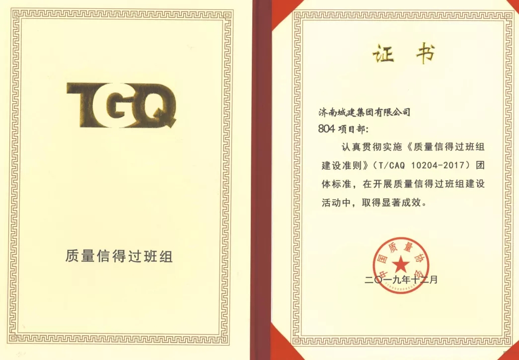 近日,2019年度中國質(zhì)量協(xié)會質(zhì)量信得過班組建設(shè)活動正式落幕,濟南城市建設(shè)集團所屬濟南城建集團有限公司、濟南黃河路橋建設(shè)集團有限公司各有三個班組榜上有名,榮獲“全國質(zhì)量信得過班組”榮譽稱號。