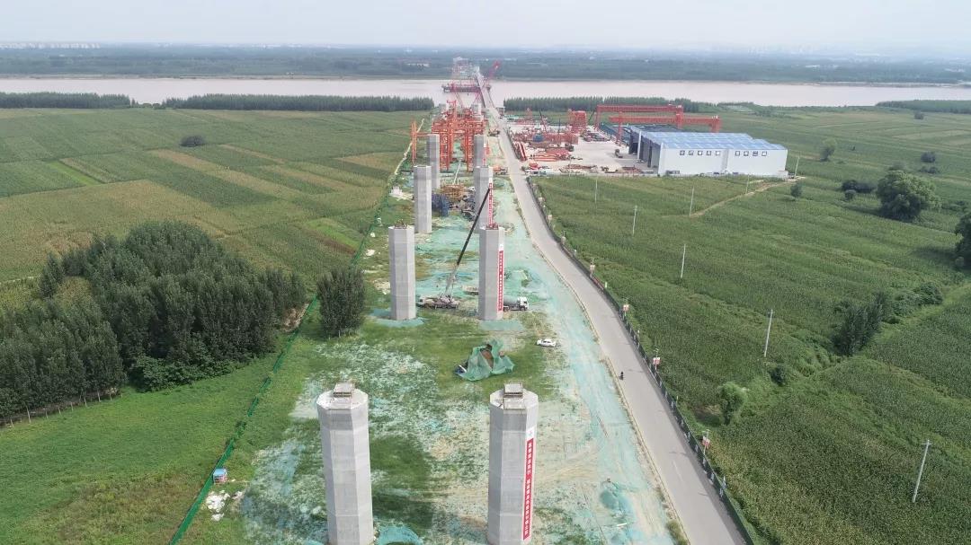 由濟南城市建設集團負責建設的鳳凰路黃河大橋工程(G220至濟青高速公路王舍人互通立交連接線工程)位于濟南市歷城區(qū)、高新區(qū)、濟陽區(qū),項目路線南起壩王路與荷花路交叉口,接現(xiàn)狀壩王路,依次跨越邯膠鐵路聯(lián)絡線、南水北調工程濟東明渠后繼續(xù)往北,在小河套村向西北方向延伸,跨越黃河后與G220平交。項目全長6683米,包括特大橋2座,其中跨黃河主橋和引橋長3788米,跨邯膠鐵路聯(lián)絡線及南水北調橋梁長1323米。