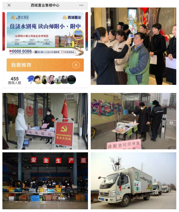 在集團(tuán)黨委的引領(lǐng)下,各級(jí)黨組織、所屬企業(yè)積極響應(yīng),主動(dòng)作為,各企業(yè)主要負(fù)責(zé)同志認(rèn)真履行第一責(zé)任人職責(zé),對(duì)疫情防控工作親自安排部署、親自組織推動(dòng)、親自跟蹤問(wèn)效,充分發(fā)揮自身優(yōu)勢(shì),組織調(diào)配資源和力量,全力做好疫情防控服務(wù)保障,以實(shí)際行動(dòng)踐行使命和責(zé)任擔(dān)當(dāng)。集團(tuán)楊柳春風(fēng)、西城·濟(jì)水上苑等地產(chǎn)項(xiàng)目暫停營(yíng)銷(xiāo)接待工作,堅(jiān)持每天開(kāi)展全面、持續(xù)消毒,加強(qiáng)園區(qū)、寫(xiě)字樓的聯(lián)防聯(lián)控,啟動(dòng)線(xiàn)上VR看房通道,足不出戶(hù)在家安心看房,讓客戶(hù)享受便捷、周到的服務(wù)。西城資產(chǎn)公司在西城大廈一層南門(mén)設(shè)置“消毒回廊”,公司防控小組每天到西客站東場(chǎng)綜合體、西城大廈、東廣場(chǎng)地下停車(chē)場(chǎng)、東廣場(chǎng)地下餐廳及長(zhǎng)清西部創(chuàng)新園項(xiàng)目、大學(xué)城 9 號(hào)樓、長(zhǎng)清安置三區(qū)等 7 個(gè)項(xiàng)目督導(dǎo)檢查疫情防控工作情況,確保區(qū)域防控措施落實(shí)到位。濟(jì)西農(nóng)場(chǎng)公司全員上崗,加班加點(diǎn),將線(xiàn)上與線(xiàn)下銷(xiāo)售平臺(tái)相結(jié)合,每天向市內(nèi)配送平價(jià)新鮮蔬菜,為疫情期間全市蔬菜市場(chǎng)供應(yīng)和穩(wěn)定做出了積極貢獻(xiàn)。