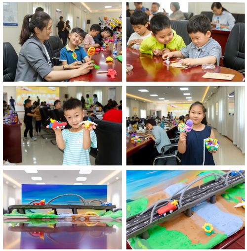 通過(guò)工程人員講解與現(xiàn)場(chǎng)參觀,孩子們對(duì)齊魯黃河大橋有了一定的認(rèn)識(shí),親子互動(dòng)環(huán)節(jié)中,在三位專(zhuān)業(yè)泥塑老師的指導(dǎo)下,小朋友們與家長(zhǎng)相互配合,用泥塑筑造他們心中的齊魯黃河大橋。