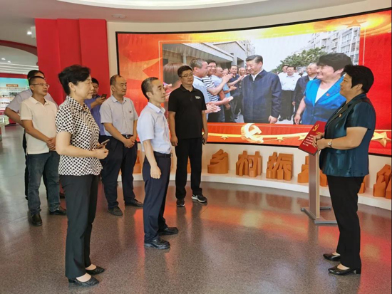 在三澗溪村,工作人員帶領大家重走習近平總書記的考察足跡。在村委會黨群服務中心,深入了解了三澗溪村的成長史、黨組織的發(fā)展歷程、黨組織建設經驗和先進做法,以及“四鄰聯動”等為民服務體系。在鄉(xiāng)村振興主題展館,工作人員為大家講解了習近平總書記親臨三澗溪村視察指導的有關情形,并結合實物、圖片、視頻、展板等載體講述了三澗溪黨委不忘初心,牢記使命,擔當作為,團結帶領村民脫貧致富的奮斗歷程。期間,工作組與三澗溪村黨委書記高淑貞就黨建引領、鄉(xiāng)村振興等方面進行了暢談交流,參觀結束,全體人員在黨旗前重溫了入黨誓詞。