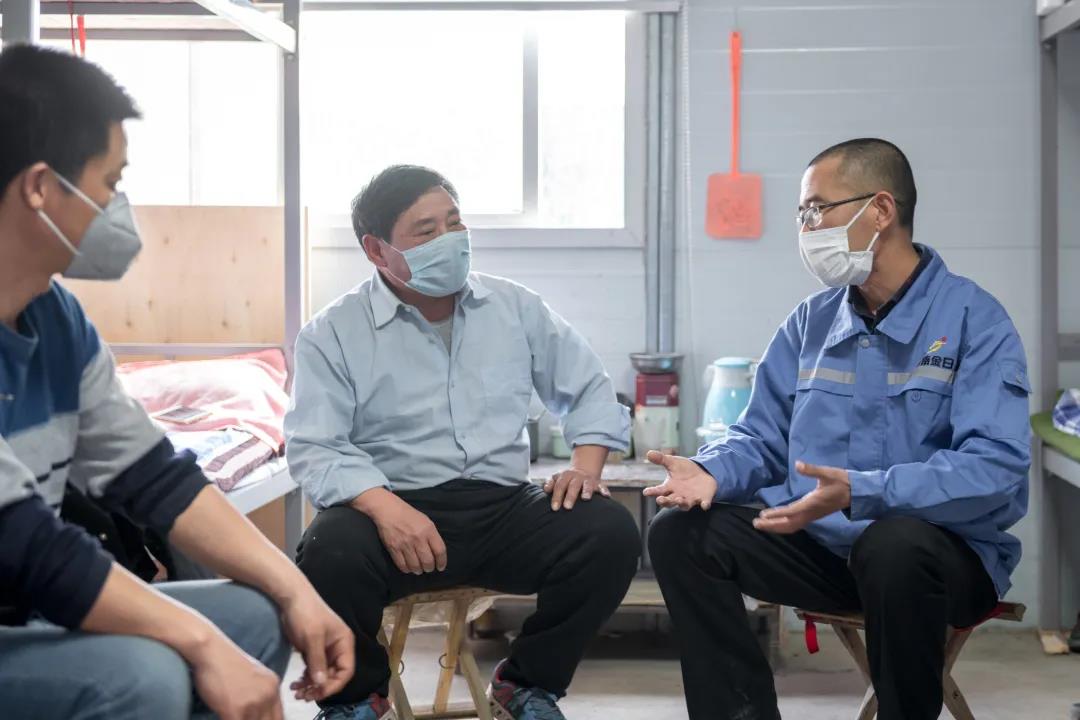 為了保障項(xiàng)目進(jìn)度,按照計(jì)劃,春節(jié)期間有60多名工人留守在了綜合場(chǎng)站。面對(duì)突如其來(lái)的疫情,有些工人心理狀態(tài)還在“春節(jié)模式”,思想不夠重視,有些工人焦急萬(wàn)分、歸鄉(xiāng)心切,做好工人的心理安撫和疏導(dǎo)工作成了防疫情、保生產(chǎn)的重中之重。“我邀請(qǐng)專業(yè)人員對(duì)大家進(jìn)行了疫情知識(shí)宣講,引起他們思想上高度重視,同時(shí)注意對(duì)員工個(gè)人的談心溝通,讓他們務(wù)實(shí)收心,調(diào)整好工作狀態(tài),起到了不錯(cuò)的效果”,作為在工地上摸爬滾打了十幾年的人,馬年先對(duì)工人的談心能做到要言不煩、一語(yǔ)中的,讓全員吃下了了一顆“定心丸”。