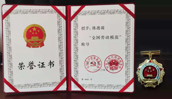 2017年,陳德國獲得濟南市勞動模范稱號,2018年獲得山東省勞動模范稱號,2020年11月24日,陳德國在北京人民大會堂接受表彰,獲得全國勞動模范稱號。對于榮譽,陳德國說:“我就是一個地地道道的農民,從小對土地有很深的感情,就想踏踏實實種好地,干好本職工作,榮譽是大家共同努力的結果,對我個人是一種動力,我想能借助集團平臺,為食品安全和綠色農業(yè)發(fā)展做點力所能及的事情。”