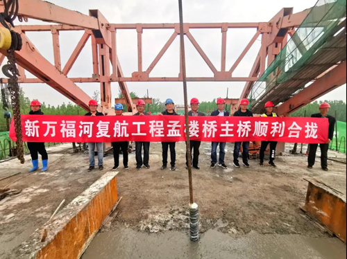4月19日,隨著最后一方混凝土澆筑完成,經過10個月的建設,濟寧金鄉(xiāng)新萬福河復航工程孟樓橋懸臂現(xiàn)澆箱梁順利合攏。