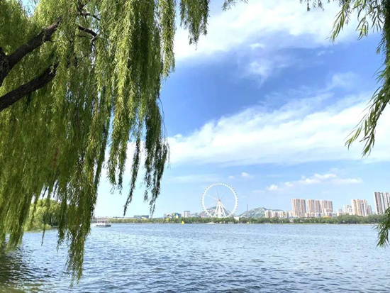 幾場(chǎng)雨過后,長(zhǎng)清湖水位創(chuàng)歷史新高,藍(lán)天白云、岸綠湖清,信步其間、倍感愜意。