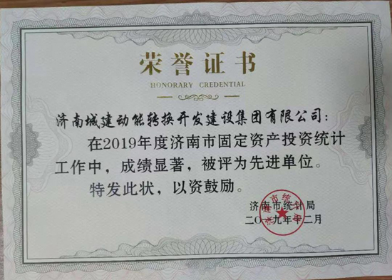 近日,2019年度濟(jì)南市固定資產(chǎn)投資統(tǒng)計(jì)工作先進(jìn)集體、先進(jìn)個(gè)人名單公布。濟(jì)南城建動(dòng)能轉(zhuǎn)換開(kāi)發(fā)建設(shè)集團(tuán)有限公司榮獲濟(jì)南市統(tǒng)計(jì)局“2019年度濟(jì)南市固定資產(chǎn)投資統(tǒng)計(jì)工作先進(jìn)單位”稱號(hào),冷見(jiàn)奇、潘文凱、周宇三名同志被評(píng)為“固定資產(chǎn)投資統(tǒng)計(jì)工作先進(jìn)個(gè)人”。
