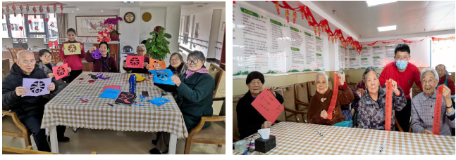 節(jié)日期間,金齡健康的員工們以堅(jiān)守崗位,以長(zhǎng)者的需求為重,每一天都安排了豐富多彩的娛樂(lè)活動(dòng)。有泥塑、剪紙、寫春聯(lián)等手工活動(dòng);也有擊鼓傳花、套圈、紅歌KTV等參與性活動(dòng)。公司也對(duì)在崗員工表達(dá)了關(guān)心和祝福,準(zhǔn)備了零食福袋和橘子等慰問(wèn)品,希望他們?cè)谡疹櫤萌胱¢L(zhǎng)者的同時(shí)也能照顧好自己,讓歡聲笑語(yǔ)包圍充滿園區(qū),共同度過(guò)一個(gè)熱鬧祥和的新年。