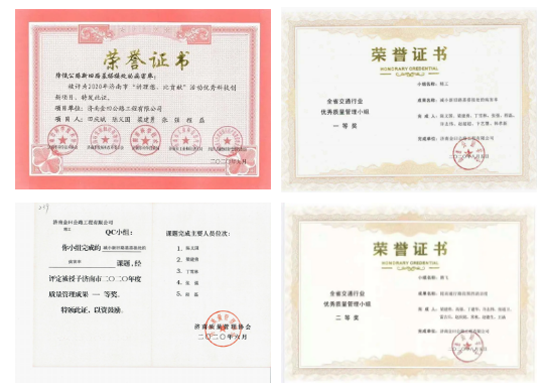 項(xiàng)目在保證施工安全、質(zhì)量、工期的同時(shí),積極開展優(yōu)化、創(chuàng)新活動(dòng)。“精工”QC小組《減小新舊路基搭接處的病害率》課題,被濟(jì)南市質(zhì)量管理協(xié)會(huì)評(píng)為2020年度一等獎(jiǎng),山東公路協(xié)會(huì)一等獎(jiǎng),并被評(píng)為2020年濟(jì)南市“講理想、比貢獻(xiàn)”活動(dòng)優(yōu)秀科技創(chuàng)新項(xiàng)目;“騰飛”QC小組《提高通行路段圍擋清潔度》課題,被濟(jì)南市質(zhì)量管理協(xié)會(huì)評(píng)為2020年度二等獎(jiǎng)。