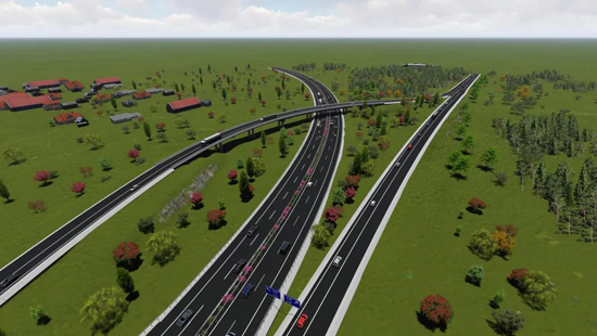 循環(huán)利用舊路材料,通過(guò)廠拌熱再生和廠拌冷再生方式,變廢為寶。同時(shí),對(duì)基本農(nóng)田進(jìn)行避讓,通過(guò)擋墻設(shè)計(jì)減少占地,較工可立項(xiàng)減少67.203畝;橋梁設(shè)置防拋網(wǎng),有效保證橋下行車安全。