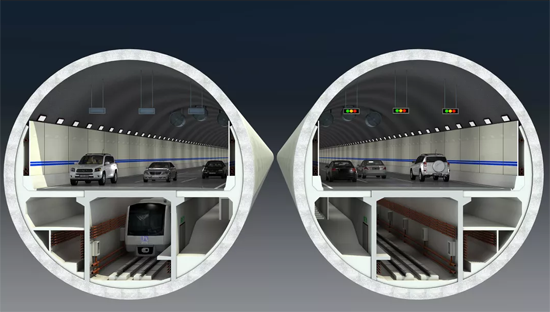 項目提出了雙道防淹門解決方案,以實現(xiàn)全方位有效封堵,保護(hù)城市安全。為拓展城市空間,濟(jì)南黃河隧道設(shè)計為城市市政道路和軌道交通合建方案,實現(xiàn)隧道空間最大利用率。“萬里黃河第一隧”設(shè)計為雙管雙層公軌合建盾構(gòu)隧道,上層為公路雙向6車道,下層為軌道交通以及排煙通道、管廊和逃生通道,實現(xiàn)一次穿越黃河的利用率最大化,極大降低了對環(huán)境的影響。