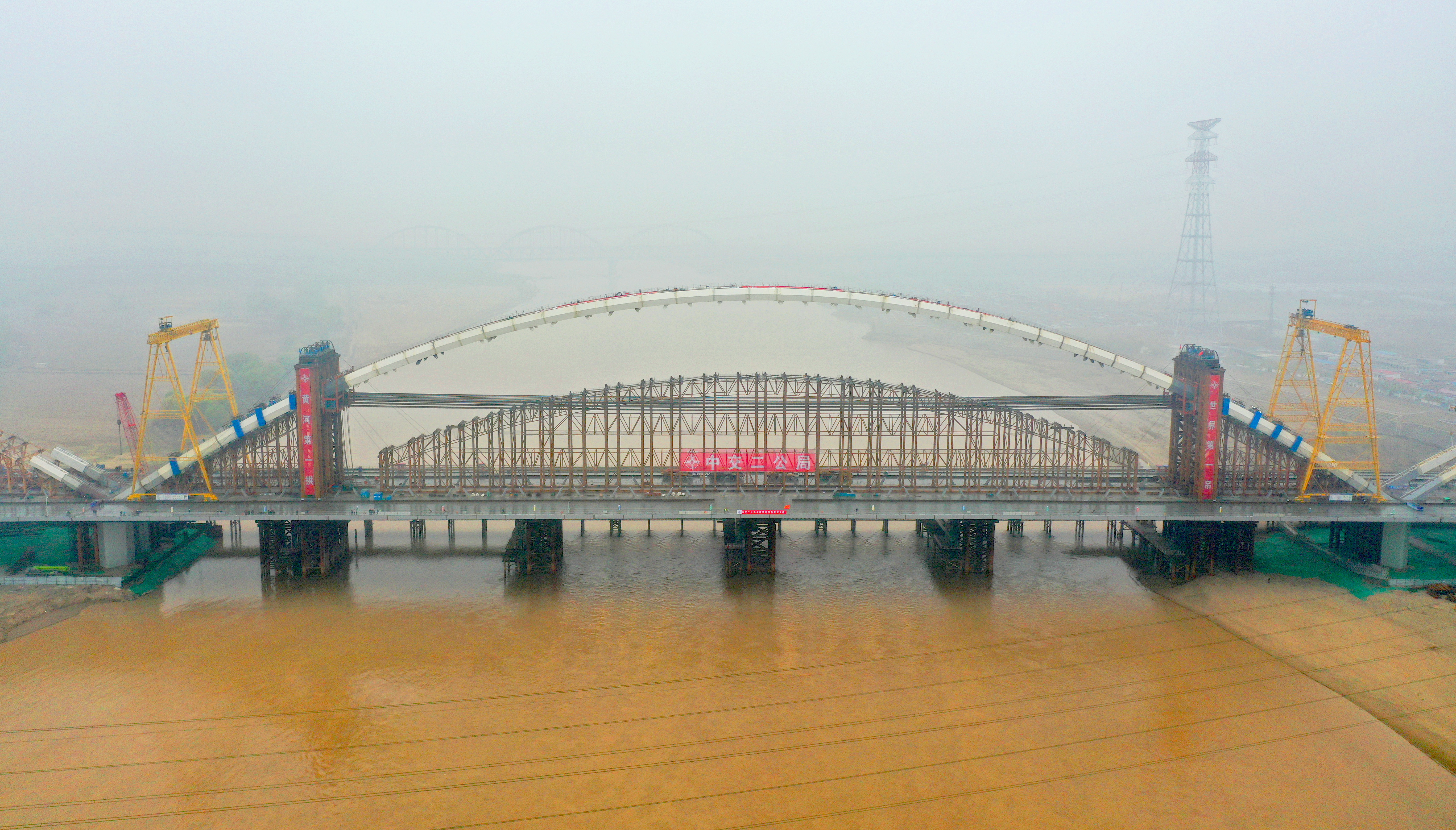 齊魯黃河大橋位于濟(jì)南市槐蔭區(qū),是濟(jì)南市推進(jìn)新舊動能轉(zhuǎn)換和攜河北跨發(fā)展的關(guān)鍵性工程,按照雙向八車道一級公路標(biāo)準(zhǔn)設(shè)計,公軌同層,兼顧城市主干路功能,設(shè)計速度60公里/小時,線路全長6742米,主橋長度1170m。齊魯黃河大橋為黃河之上首座下承式網(wǎng)狀系桿拱橋,主跨徑達(dá)420米、寬60.7m,創(chuàng)世界同類型橋梁最大跨徑、最大梁寬,其400Mpa超高應(yīng)力幅拉索在橋梁建設(shè)領(lǐng)域首次研發(fā)應(yīng)用。
