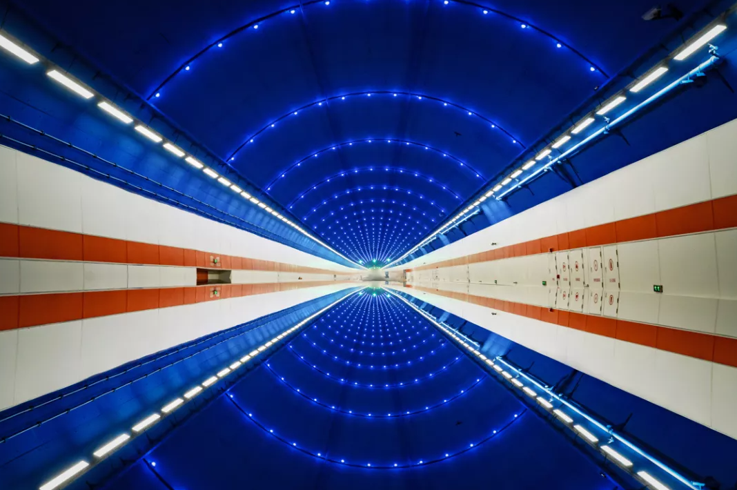 濟(jì)南黃河濟(jì)濼路隧道設(shè)計(jì)方案以黃河文化根脈為基,黃河之“光”為“場(chǎng)”,融合黃河歷史、文化、自然、藝術(shù)等表現(xiàn)黃河兩岸是我家。“黃河根脈歲歲安瀾”主題設(shè)計(jì)定位為城河相融,動(dòng)靜相融,蘊(yùn)含“天人合一”的設(shè)計(jì)理念,讓黃河隧道藝術(shù)空間景觀和自然互為補(bǔ)充。設(shè)計(jì)中借黃河水紋傳統(tǒng)紋樣,將黃河文化與自然生態(tài)中的場(chǎng)地、色彩、光影結(jié)合,再造了黃河地形與黃河流動(dòng)的自然之美,描繪了新時(shí)代黃河畫卷中詩情畫意的城市底蘊(yùn)。