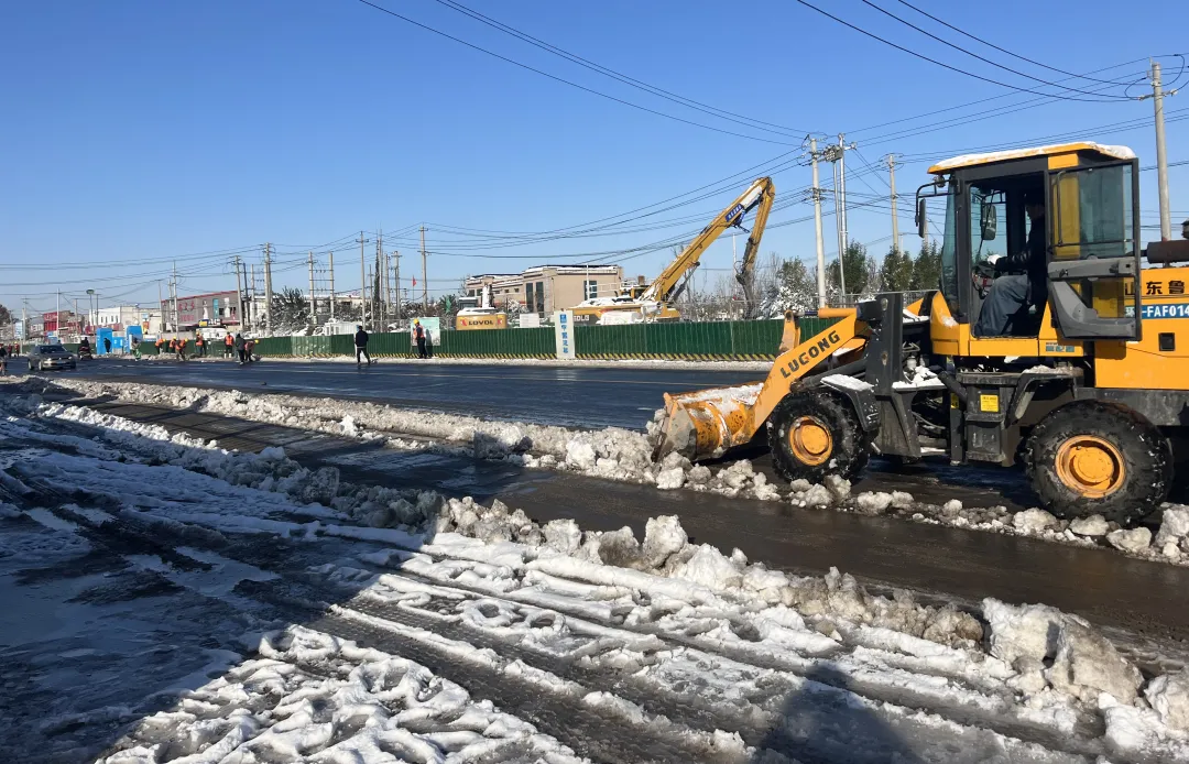 在寒潮期間,施工現(xiàn)場(chǎng)項(xiàng)目緊急出動(dòng)全部施工機(jī)械,用半天時(shí)間就完成清雪工作。同時(shí),項(xiàng)目發(fā)動(dòng)施工人員三班輪流作業(yè),通過(guò)開(kāi)展勞動(dòng)競(jìng)賽,調(diào)動(dòng)施工單位的積極性,高峰期施工人數(shù)達(dá)近千人,上百臺(tái)機(jī)械同時(shí)開(kāi)動(dòng),各工種作業(yè)人員井然有序,終于如期完成階段性通車(chē)節(jié)點(diǎn)。