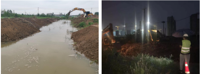 27日晚,集團工程二部組織各全詢單位現(xiàn)場管理人員56人,濟南金曰公路工程有限公司應急工人180人,大型挖掘機40臺,待命挖掘機30臺,破碎錘8臺,渡船13艘,防汛物資車5輛按時到位,直至29日凌晨,經過連續(xù)兩晚奮戰(zhàn),已將河道斷面內侵萎縮、邊坡坍塌、河槽淤積、水面漂浮物、規(guī)劃道路堵塞現(xiàn)狀河道等多處險情一一排除,完成沿線全部堵點清淤疏浚任務。