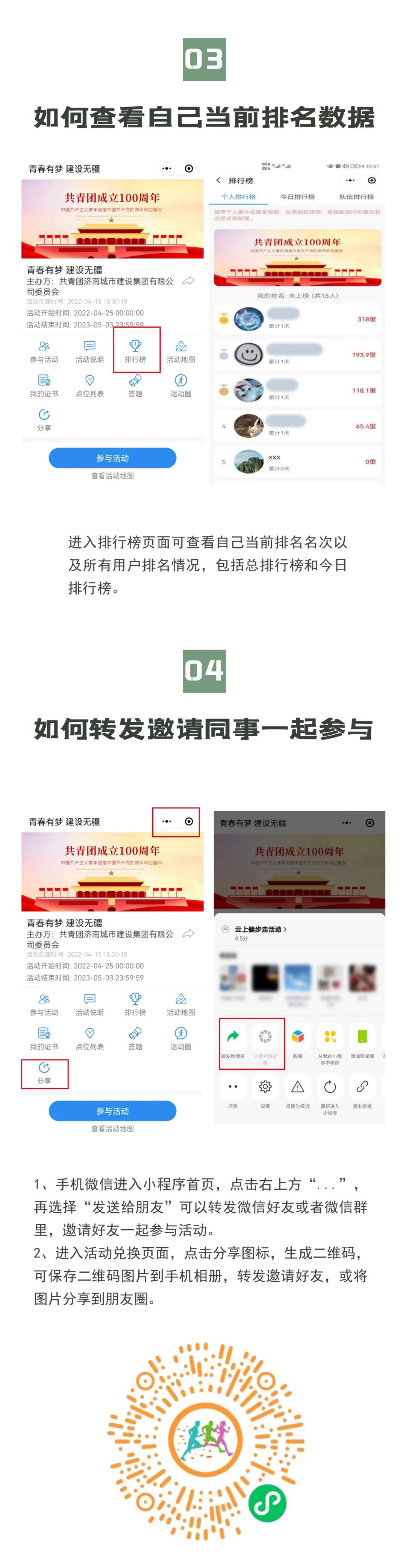為慶祝建團(tuán)100周年,開展好“百年崢嶸、初心不改、青春與共、砥礪前行”主題教育實(shí)踐活動(dòng),展現(xiàn)集團(tuán)自成立以來的光輝歷程,賡續(xù)集團(tuán)紅色精神、凝聚集團(tuán)奮進(jìn)力量,不斷增強(qiáng)廣大職工的身體素質(zhì)和健康水平,不斷提高集團(tuán)的凝聚力和向心力。由共青團(tuán)濟(jì)南城市建設(shè)集團(tuán)有限公司委員會(huì)主辦,共青團(tuán)濟(jì)南金曰公路工程有限公司委員會(huì)、濟(jì)南新城文化傳媒有限公司承辦的“青春有夢(mèng) 建設(shè)無疆”——職工線上健步走活動(dòng)將于今晚零點(diǎn)正式上線,活動(dòng)時(shí)間為2022年4月25日——5月3日(共十天)。
