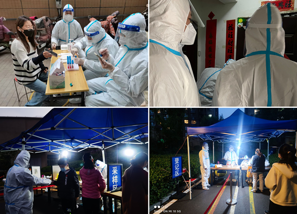 在石橋社區(qū),身著藍(lán)色工作服的青年突擊隊志愿者分工明確、相互配合,穿梭忙碌在核酸采樣現(xiàn)場:協(xié)助檢測、體溫測量、有序引導(dǎo)、登記信息、維持秩序、耐心講解。盡管現(xiàn)場下起了小雨,志愿者們冒雨作戰(zhàn),保持采樣工作有條不紊、順利推進(jìn),在規(guī)定時間內(nèi)圓滿完成社區(qū)采樣任務(wù),為石橋社區(qū)繪出一片堅實(shí)的守衛(wèi)藍(lán)。
