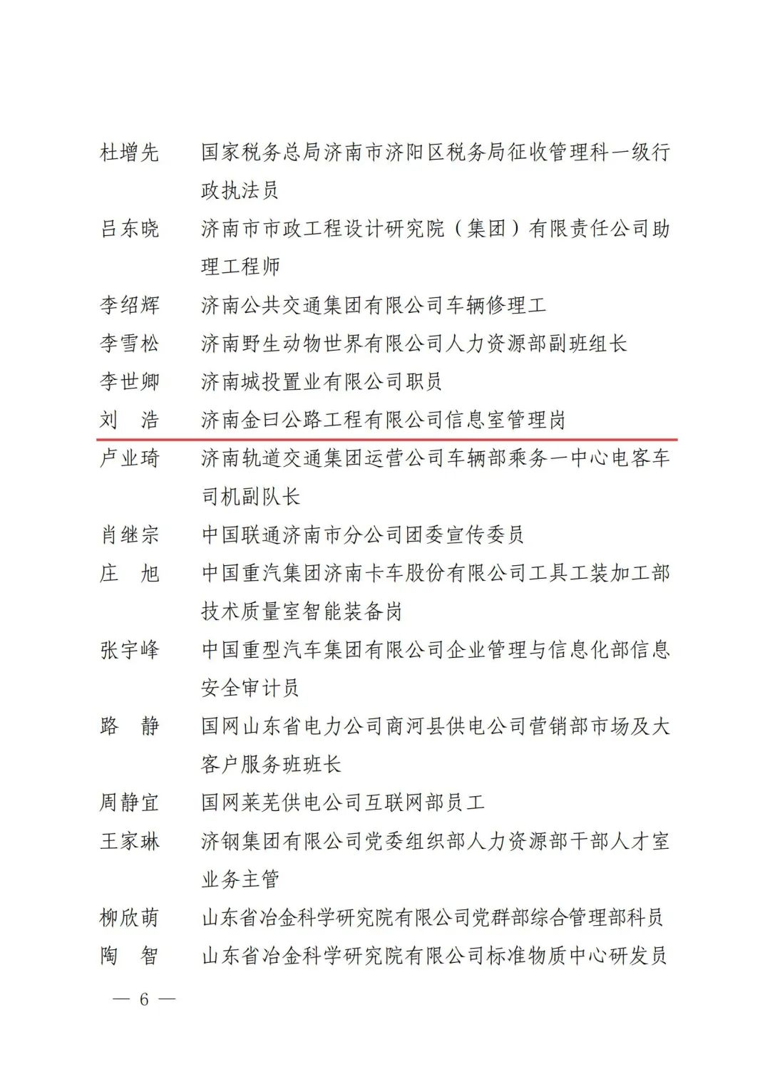 近日,共青團(tuán)濟(jì)南市委公布了《關(guān)于2021年度濟(jì)南市五四出彩典型的表?yè)P(yáng)通報(bào)》,建設(shè)集團(tuán)團(tuán)委所屬團(tuán)組織及團(tuán)員青年榮獲“濟(jì)南市五四紅旗團(tuán)組織”“濟(jì)南市青年志愿服務(wù)先進(jìn)個(gè)人”“濟(jì)南市優(yōu)秀共青團(tuán)員”“濟(jì)南市優(yōu)秀共青團(tuán)干部”等4項(xiàng)榮譽(yù)稱號(hào)。