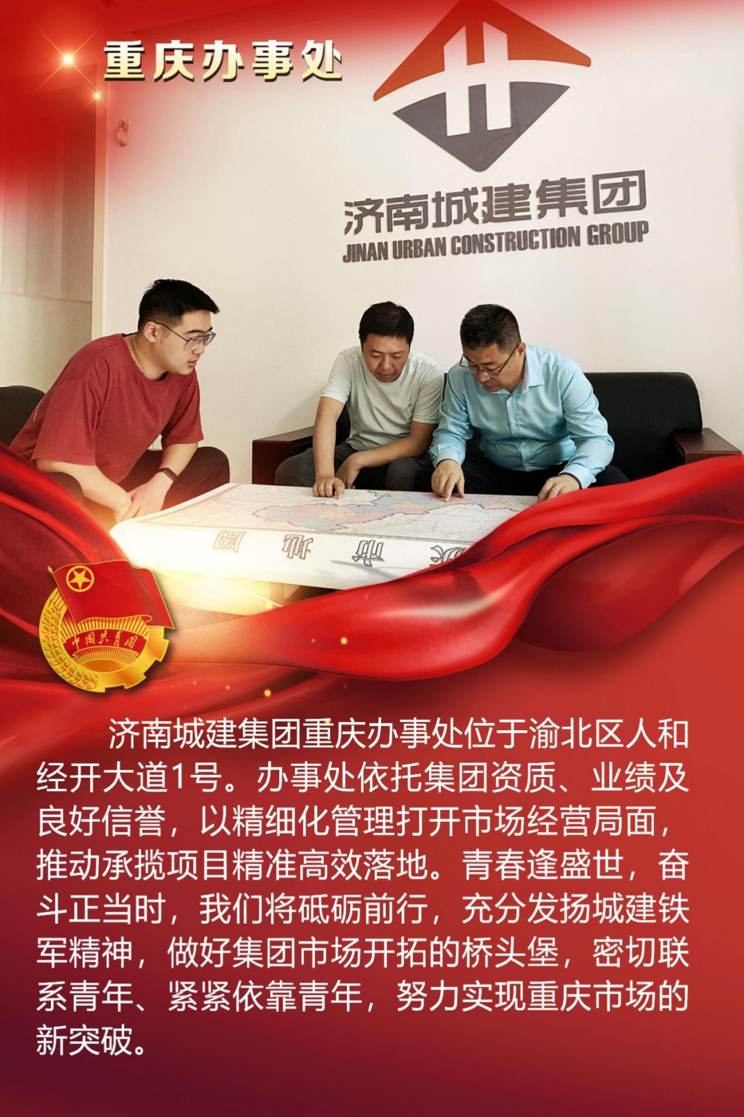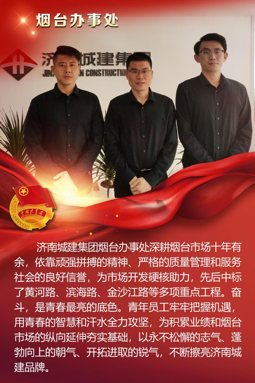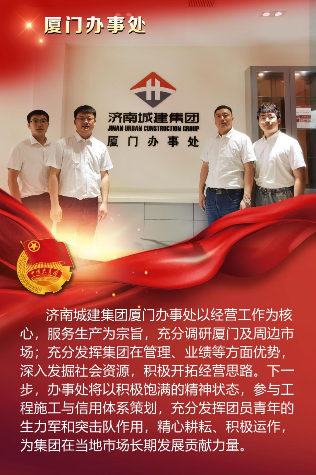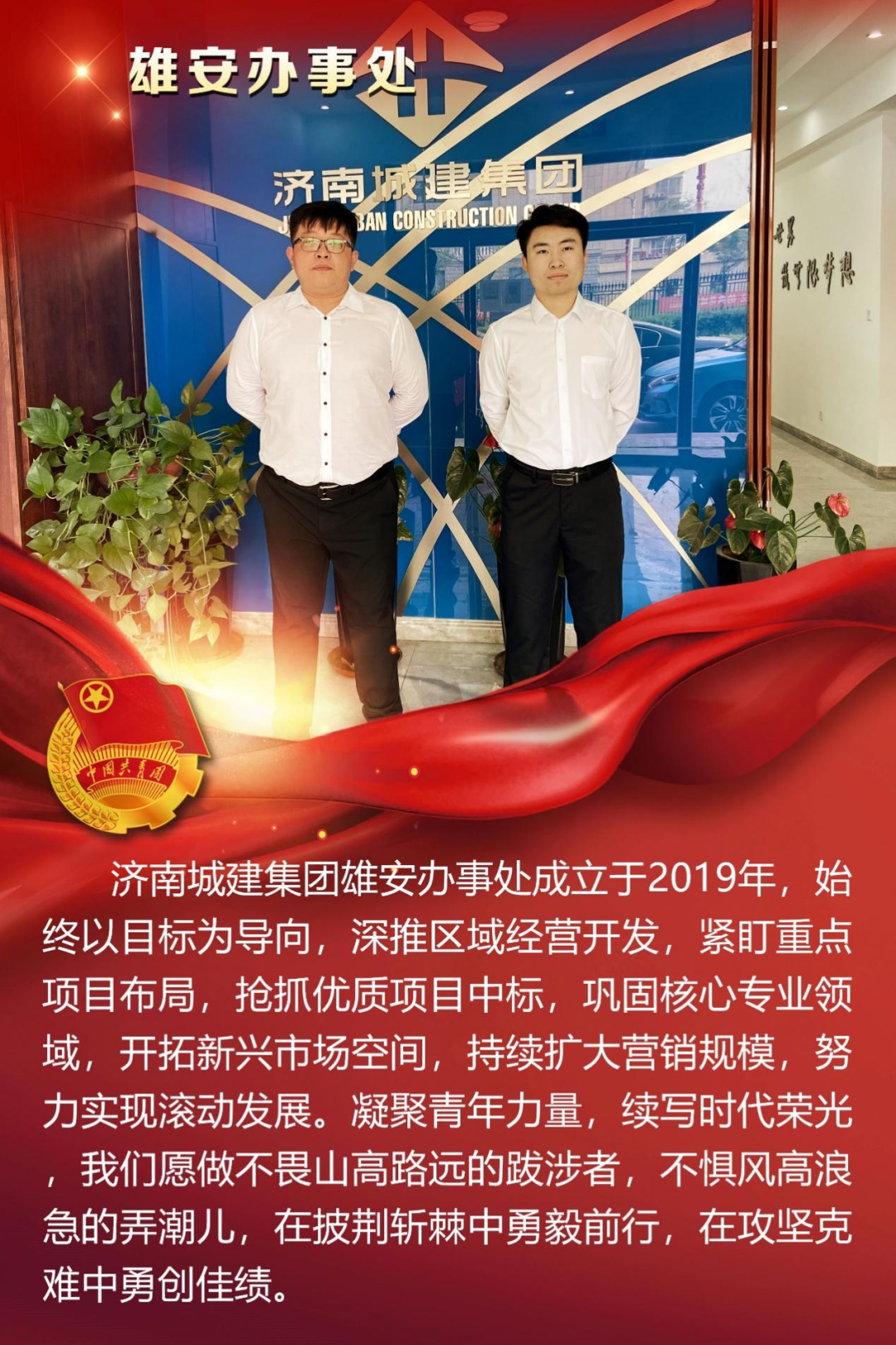 為慶祝中國共產(chǎn)主義青年團(tuán)成立100周年,深情回顧共青團(tuán)發(fā)展歷程,進(jìn)一步增強(qiáng)廣大團(tuán)員青年敬團(tuán)、愛團(tuán)意識,提升團(tuán)組織的凝聚力和向心力,展示公司團(tuán)員青年積極向上、奮發(fā)有為的精神風(fēng)貌,集團(tuán)第四團(tuán)委——濟(jì)南城建集團(tuán)有限公司團(tuán)委組織開展團(tuán)旗在城建飄揚(yáng)合影活動。