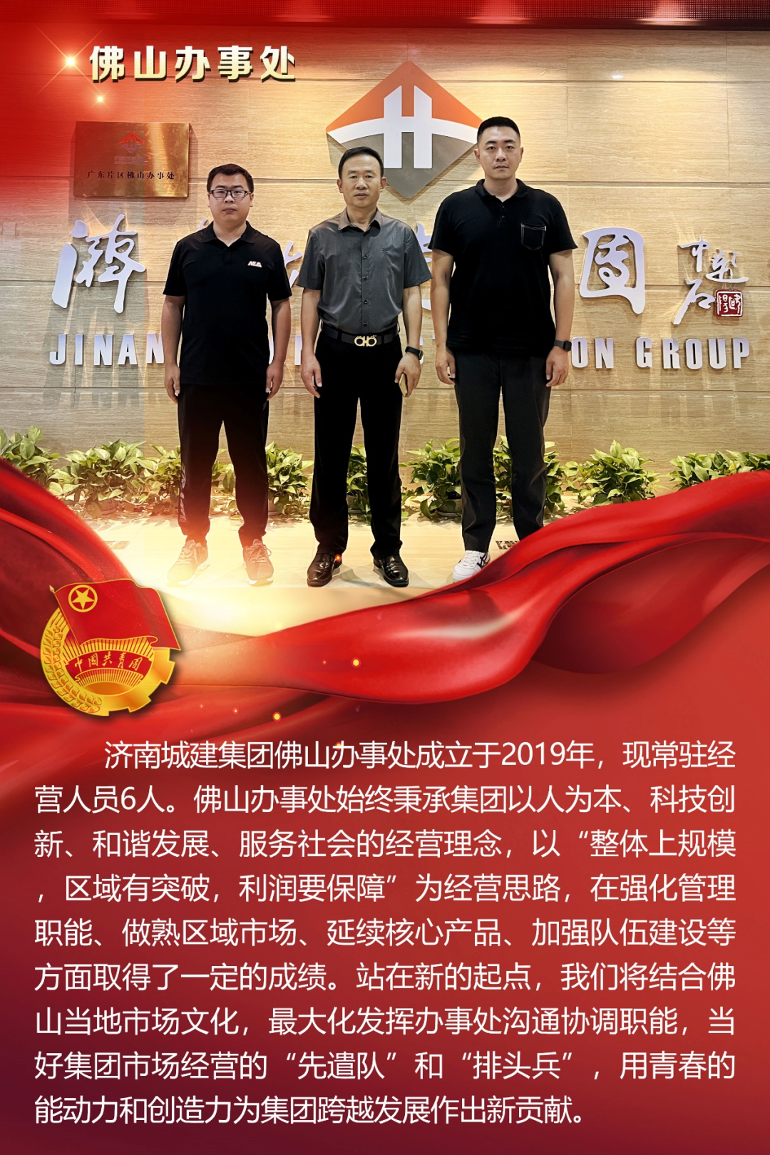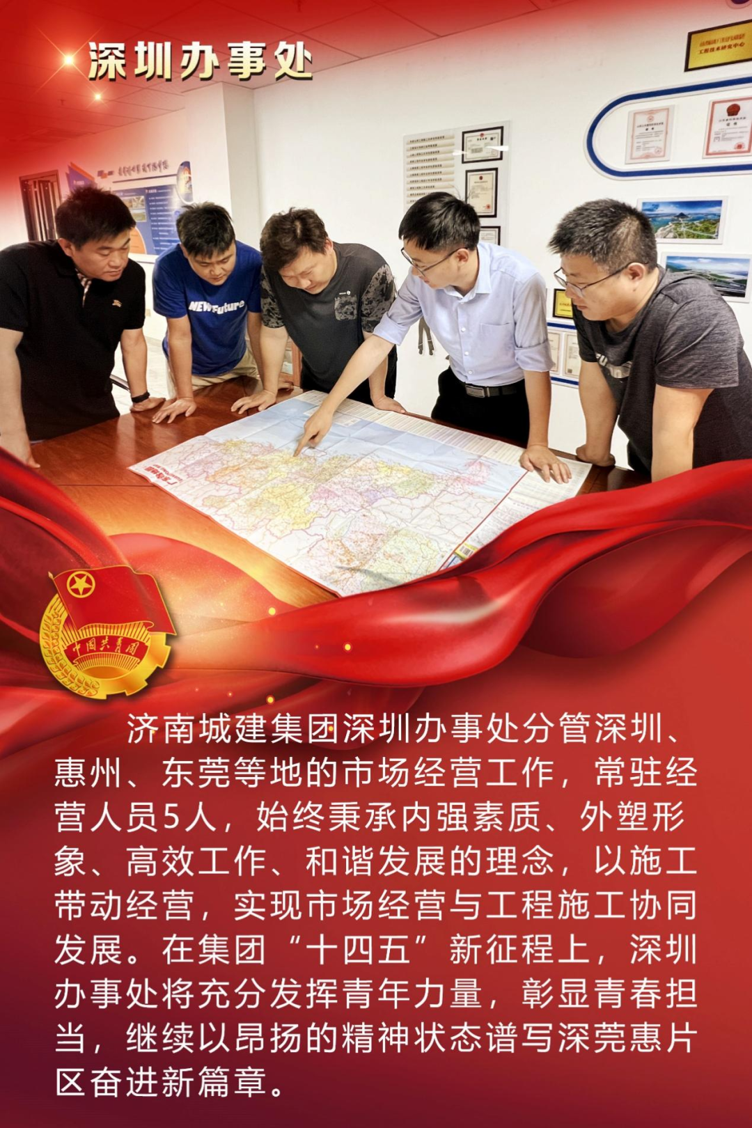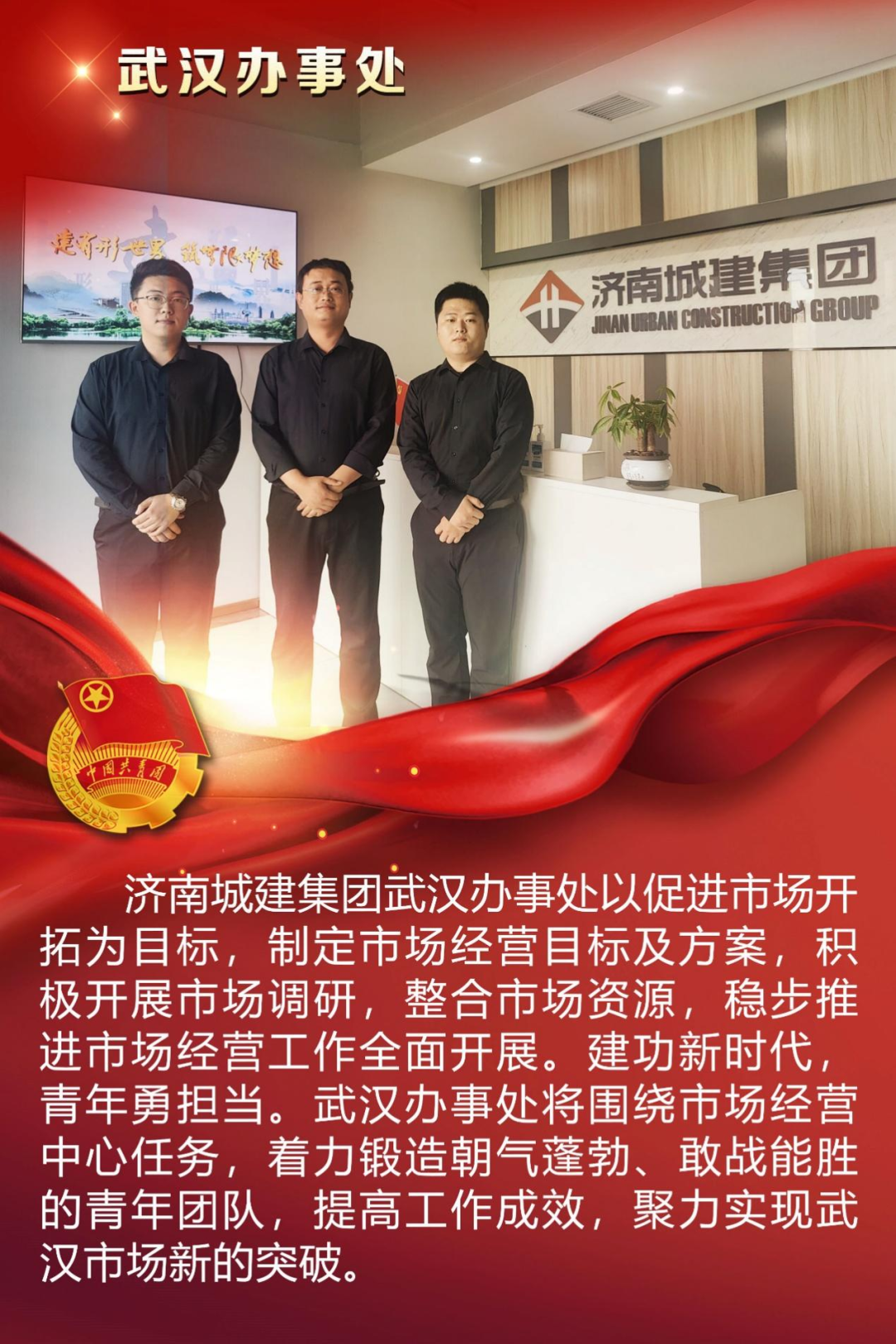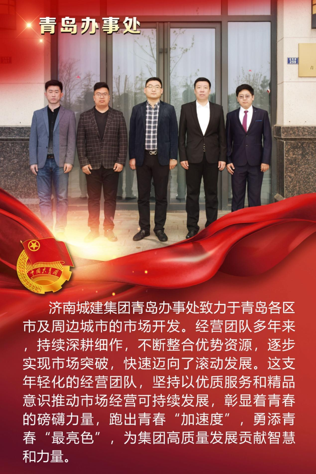 為慶祝中國共產(chǎn)主義青年團(tuán)成立100周年,深情回顧共青團(tuán)發(fā)展歷程,進(jìn)一步增強(qiáng)廣大團(tuán)員青年敬團(tuán)、愛團(tuán)意識,提升團(tuán)組織的凝聚力和向心力,展示公司團(tuán)員青年積極向上、奮發(fā)有為的精神風(fēng)貌,集團(tuán)第四團(tuán)委——濟(jì)南城建集團(tuán)有限公司團(tuán)委組織開展團(tuán)旗在城建飄揚(yáng)合影活動。