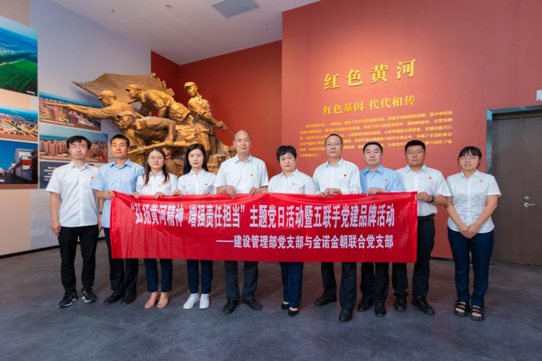 建設(shè)管理部黨支部與金諾金朝聯(lián)合黨支部開展“弘揚(yáng)黃河精神  增強(qiáng)責(zé)任擔(dān)當(dāng)”主題黨日活動(dòng),切實(shí)推進(jìn)新時(shí)代黃河文化學(xué)習(xí)工作交流,切實(shí)扛穩(wěn)保護(hù)傳承弘揚(yáng)黃河文化的歷史責(zé)任。