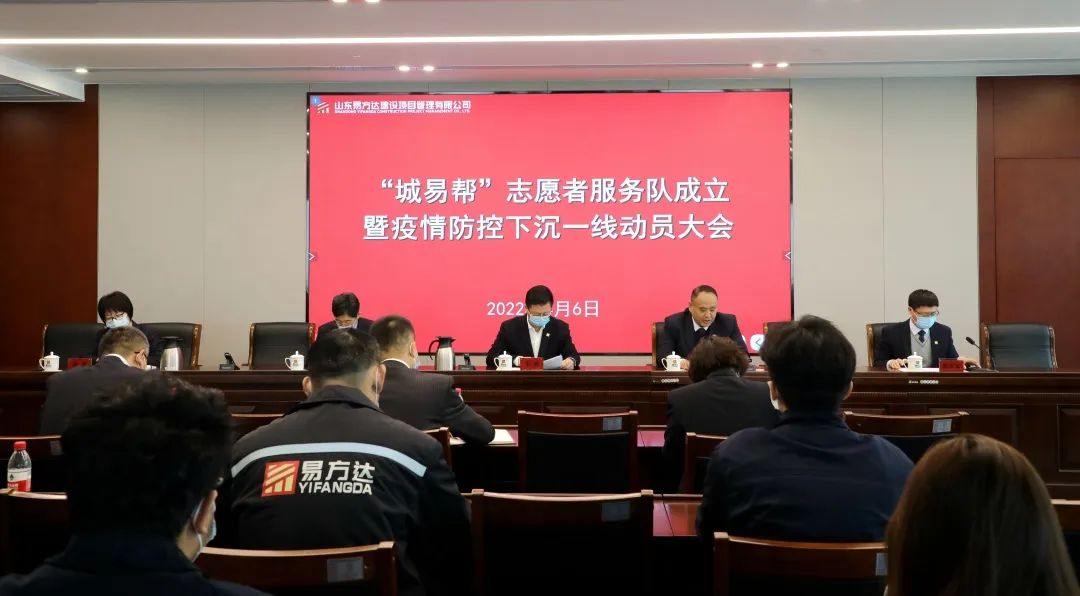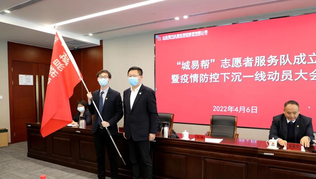 會(huì)議宣讀了公司工會(huì)關(guān)于《山東易方達(dá)建設(shè)項(xiàng)目管理有限公司關(guān)于成立“城易幫”志愿者服務(wù)隊(duì)的決定》,公司黨委書記、董事長(zhǎng)牛勇向“城易幫”志愿者服務(wù)隊(duì)進(jìn)行授旗。