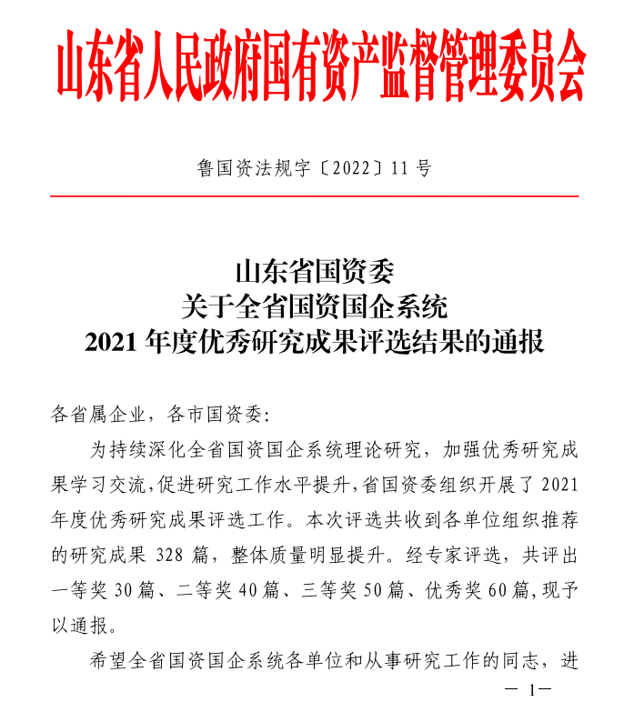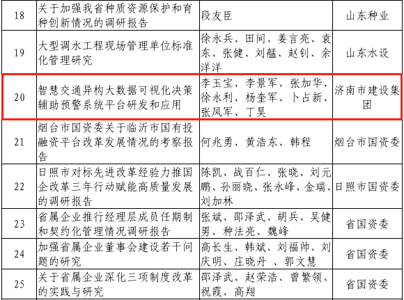 近日,山東省國資委發(fā)布了《山東省國資委關(guān)于全省國資國企系統(tǒng)2021年度優(yōu)秀研究成果評選結(jié)果的通報》(魯國資法規(guī)字〔2022〕11號)文件,濟南城市建設(shè)集團總工辦牽頭,集團所屬山東金宇信息集團有限公司研究的《智慧交通異構(gòu)大數(shù)據(jù)可視化決策輔助預(yù)警系統(tǒng)平臺研發(fā)與應(yīng)用》成果榮獲“全省國資國企系統(tǒng)2021年度優(yōu)秀研究成果”一等獎。