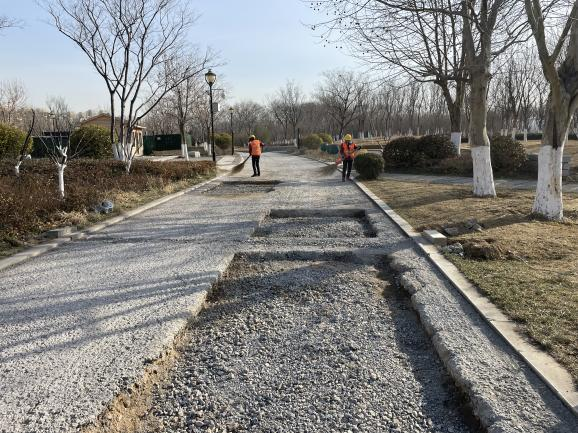 針對市民反映的補(bǔ)修華山湖北岸部分道路的訴求,集團(tuán)高度重視,工程二部相關(guān)工作人員立即到現(xiàn)場實(shí)地勘察,組織編制整修方案,確定將上部松散面層銑刨后,更換為瀝青面層,并于2月28日進(jìn)場實(shí)施??茖W(xué)組織,加強(qiáng)調(diào)度,在保護(hù)公園環(huán)境及周邊既有設(shè)施不遭破壞的基礎(chǔ)上,于3月25日施工完成,比預(yù)計時間提前一周。