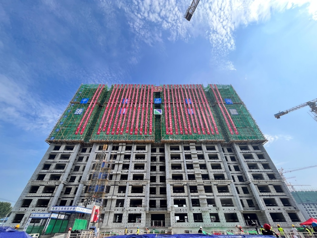7月15日,由濟南城市建設(shè)集團受委托建設(shè)的濟南新舊動能轉(zhuǎn)換起步區(qū)孫耿街道七村整合安置區(qū)(二期)工程2#樓封頂,是二期項目首棟封頂單體工程。日前,孫耿街道七村整合安置區(qū)(三期)工程已完成首棟住宅封頂,目前,二期、三期工程正搶抓黃金施工期,全力推進工程建設(shè)。
