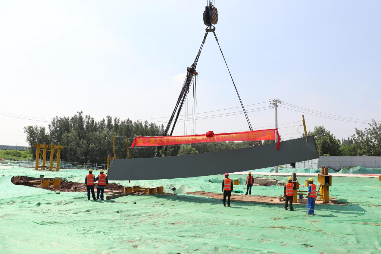 7月25日上午,濟南金曰公路工程有限公司起步區(qū)橫一路大寺河橋梁項目首節(jié)鋼梁成功完成吊裝,標志著大寺河橋梁項目下部結(jié)構(gòu)全部完成,橋梁上部結(jié)構(gòu)施工正式拉開序幕,項目建設(shè)進入攻堅階段。