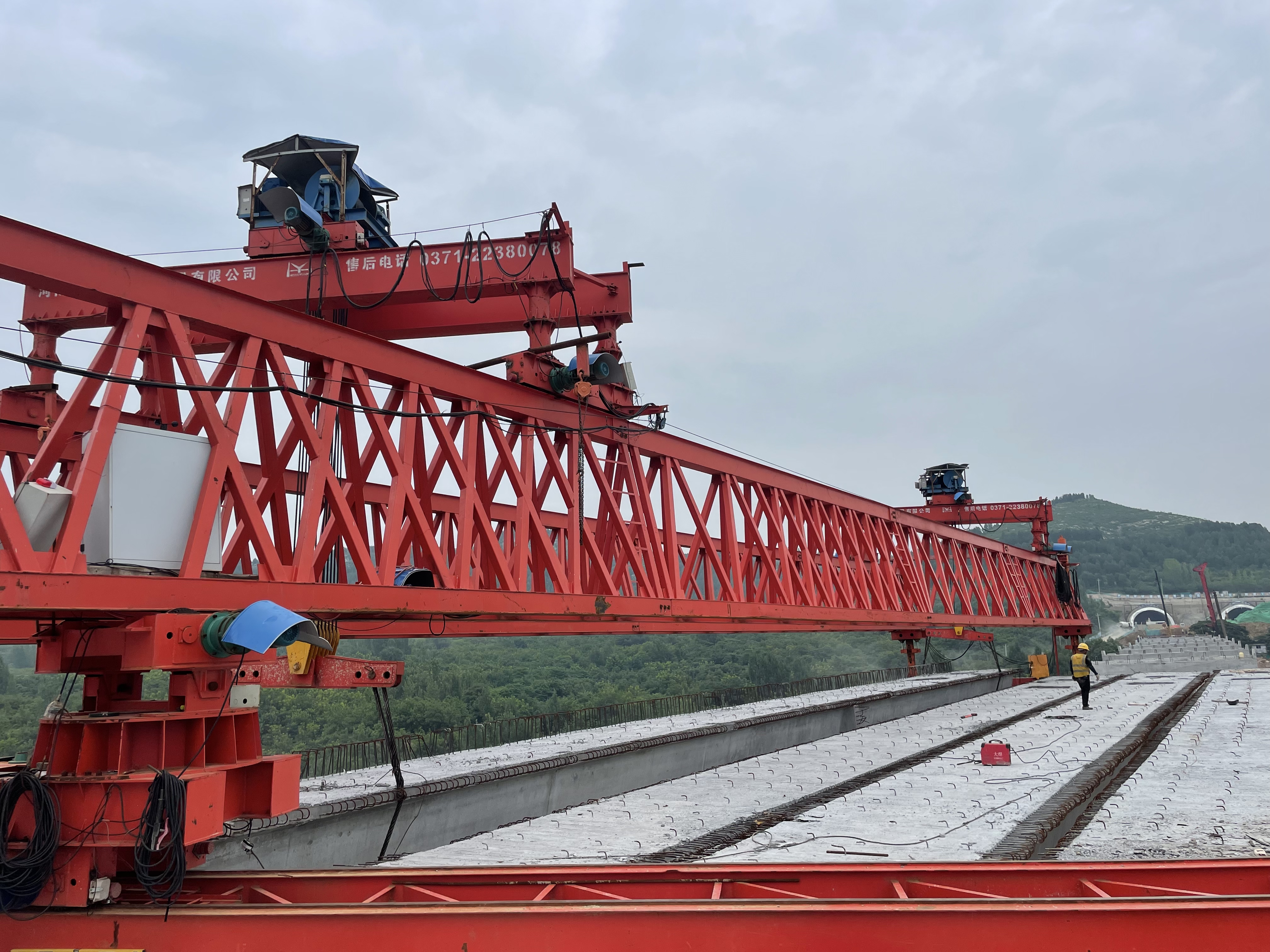 為確保既定目標(biāo)的順利完成,金曰公司從架梁方案制定、運(yùn)梁路線選擇、前后場(chǎng)指揮調(diào)度等各個(gè)環(huán)節(jié)進(jìn)行了詳盡周密的部署,增加運(yùn)梁車數(shù)量,提前將待架梁板運(yùn)至現(xiàn)場(chǎng),做到“梁板排隊(duì)等橋機(jī)”,實(shí)現(xiàn)每天完成一跨梁板架設(shè)的目標(biāo)。