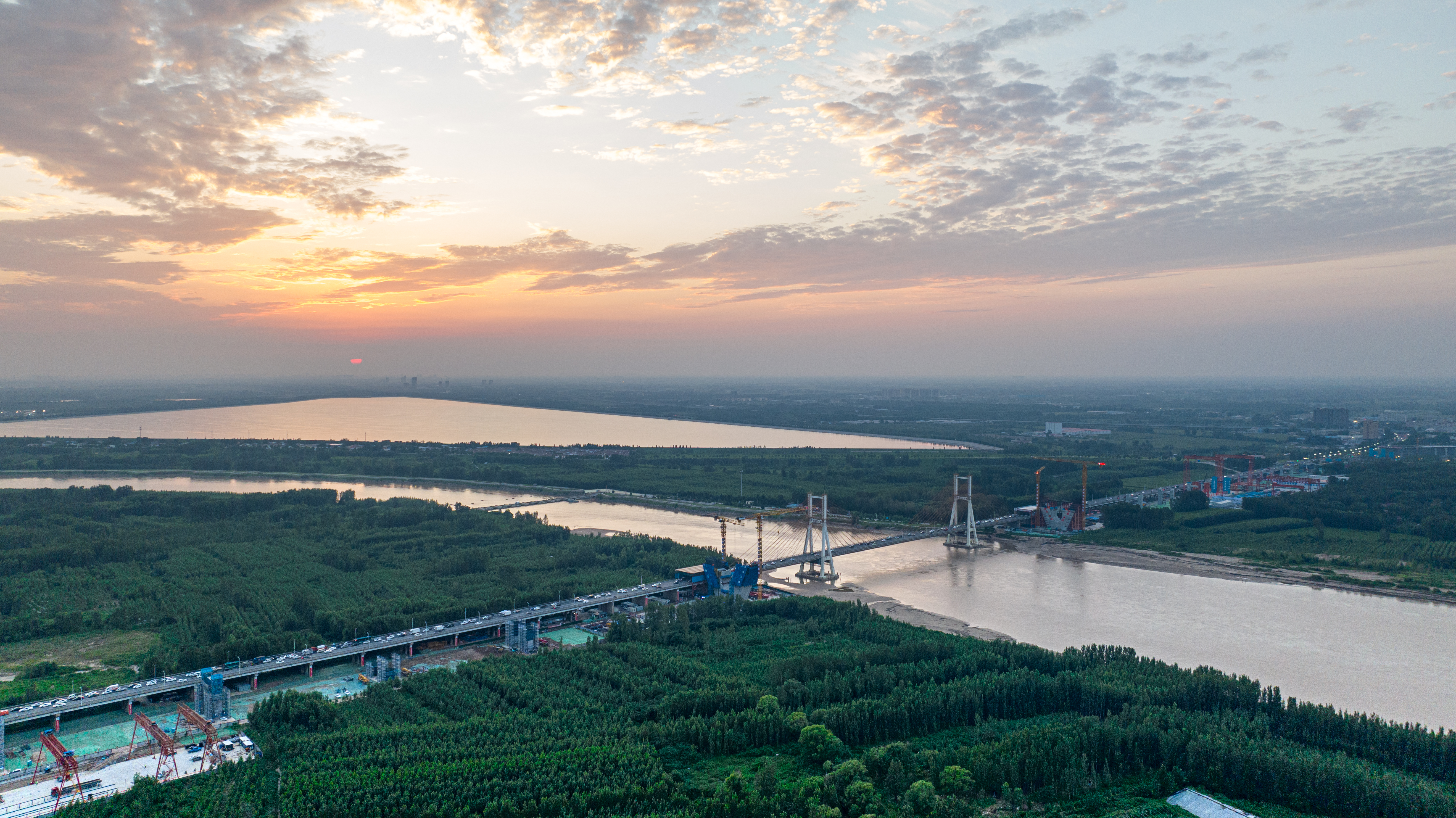 項目全長7.748公里,其中主線橋梁長6.87公里,黃河大橋主橋為主跨488米的雙塔雙索面鋼桁梁斜拉橋,與既有G104濟南黃河公路大橋(主跨220米雙塔混凝土斜拉橋)并行建設(shè),新、老橋中心間距33.5米,為黃河上第一座并橋建設(shè)工程,是黃河上跨徑最大、鋼橋總長最長的公軌分層合建橋梁。此次首節(jié)段鋼桁梁架設(shè)完成,標(biāo)志著項目建設(shè)進入橋梁上部施工階段,工程建設(shè)有序推進。
