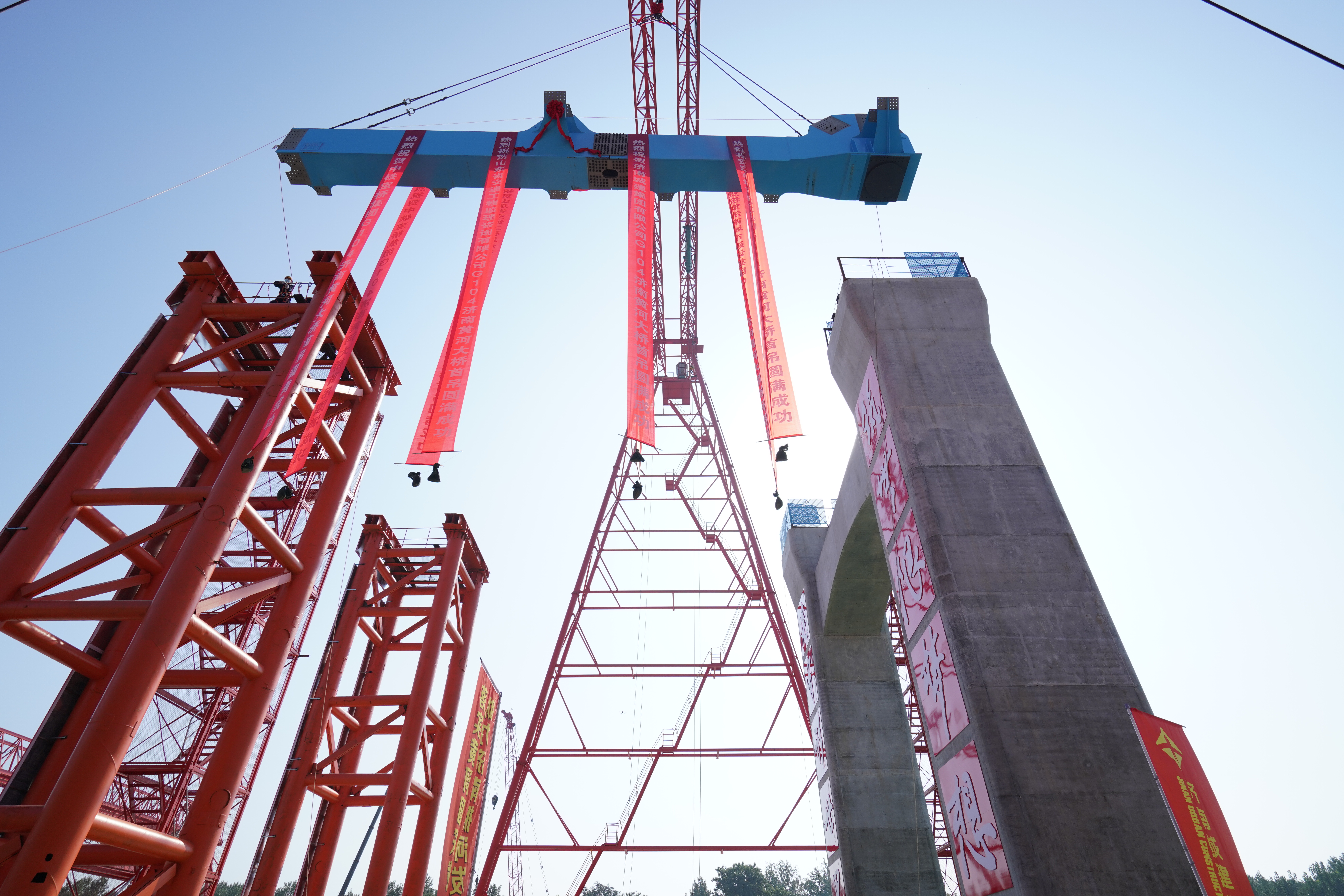 8月17日,由濟南城市建設(shè)集團負責(zé)投資、建設(shè)的G104京嵐線濟南黃河公路大橋擴建工程首節(jié)段鋼桁梁架設(shè)完成,工程建設(shè)進入橋梁上部結(jié)構(gòu)施工階段。建設(shè)集團黨委副書記、總經(jīng)理許為民出席活動并宣布首節(jié)段鋼桁梁架設(shè)啟動,集團總經(jīng)理助理、安全總監(jiān)解漢忠參加活動。