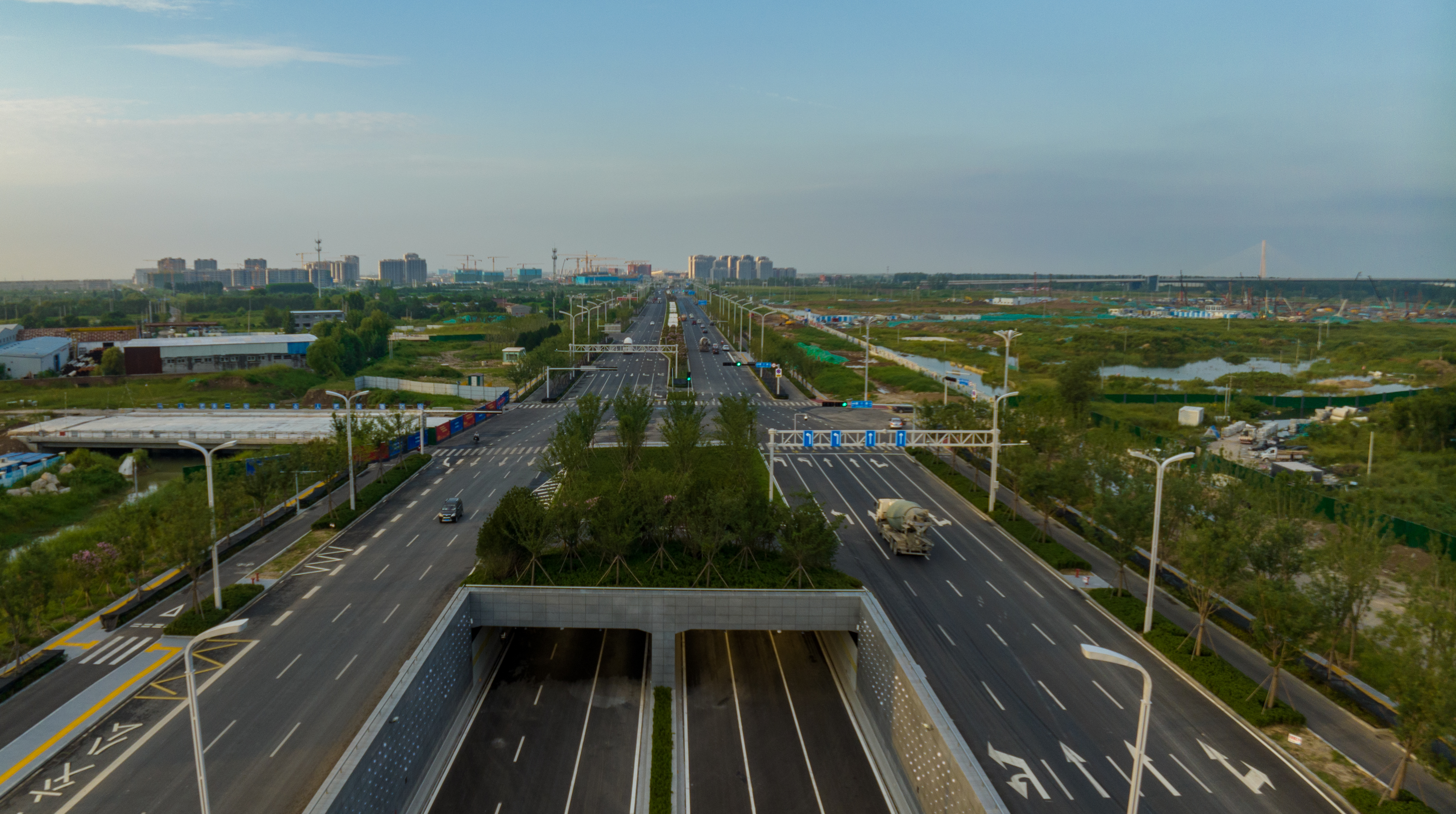 建設(shè)過程中,也積極探索各項環(huán)保新舉措。此次通車的路段全線主輔路機動車、非機動車道下面層采用廠拌熱再生瀝青混凝土,節(jié)省大量用料,取得顯著經(jīng)濟和社會效益。采用了環(huán)氧瀝青混凝土作為路面材料,在全市首次實行全厚式瀝青攤鋪技術(shù),有效減少了水泥穩(wěn)定碎石使用量,同時將施工工期縮減為原來的60%左右。而黃河體育中心地道結(jié)合環(huán)評要求,充分利用地道特點及中分帶條件,采用“豎井自然通風為主+射流風機輔助”的復(fù)合通風方式,利用地道內(nèi)外風壓差和熱壓差進行通風換氣,無需設(shè)置大型軸流風機房,節(jié)約通風系統(tǒng)設(shè)備的同時,每年更能節(jié)約用電約500萬度,踐行低碳理念。