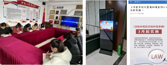 《濟(jì)南市優(yōu)化營商環(huán)境條例》(以下簡稱《條例》)于今年3月1日起施行,根據(jù)市國資委《關(guān)于開展優(yōu)化營商環(huán)境法治宣傳月活動的通知》要求,為貫徹實施好《條例》,持續(xù)優(yōu)化營商環(huán)境,3月4日-31日,集團(tuán)及各子公司積極開展了優(yōu)化營商環(huán)境法治宣傳月活動?;顒悠陂g,集團(tuán)在微信公眾號推送《<濟(jì)南市優(yōu)化營商環(huán)境條例>3月起實施》推文,同時通過電子屏投放、制作易拉寶等多種形式進(jìn)行宣傳,不斷強(qiáng)化干部職工優(yōu)化營商環(huán)境的理念,營造良好輿論氛圍。