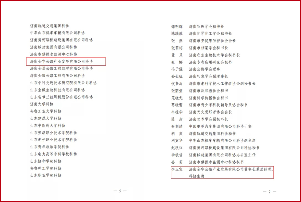 近日,濟南市科學技術(shù)協(xié)會發(fā)布了《關(guān)于2021年度濟南市科協(xié)學會企事業(yè)科協(xié)工作情況的通報》(濟科協(xié)〔2022〕1號)文件,金宇公司榮獲“2021年度濟南市科協(xié)學會企事業(yè)科協(xié)工作先進單位”,李玉寶同志榮獲“2021年度濟南市科協(xié)學會企事業(yè)科協(xié)工作先進個人”榮譽稱號。
